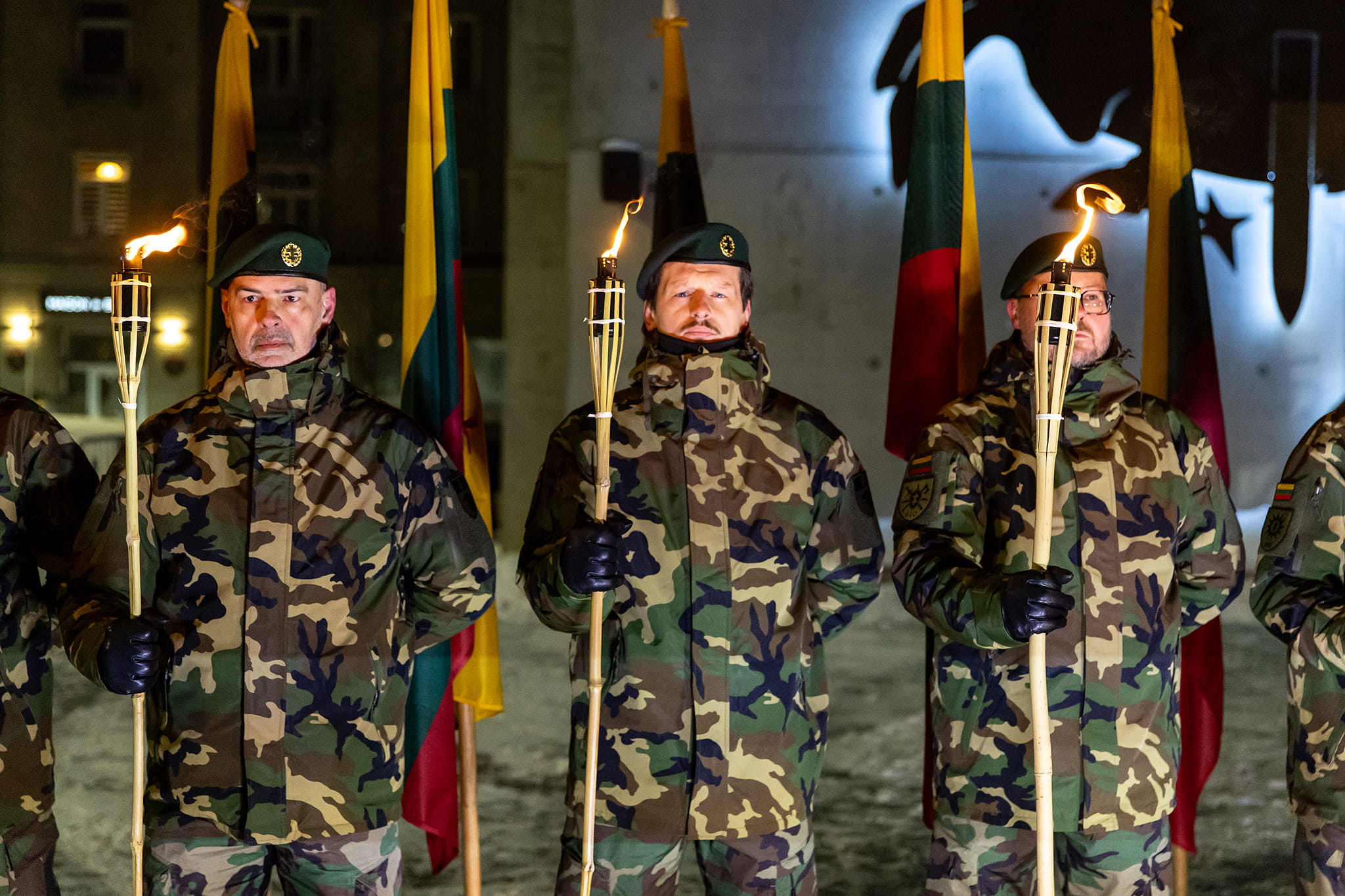Viso renginio metu aikštėje Gen. Povilo Plechavičiaus šaulių (Šiaulių apskr.) 6-osios rinktinės narių rankose ruseno degantys fakelai. Liepsnojo ir atminimo laužai, tapę ne tik šilumos bei vilties simboliais, bet ir pasipriešinimo ženklais – lygiai prieš 35-erius metus jie ne tik šildė budinčiuosius šaltomis žiemos naktimis, bet ir simbolizavo gyvą laisvės dvasią.